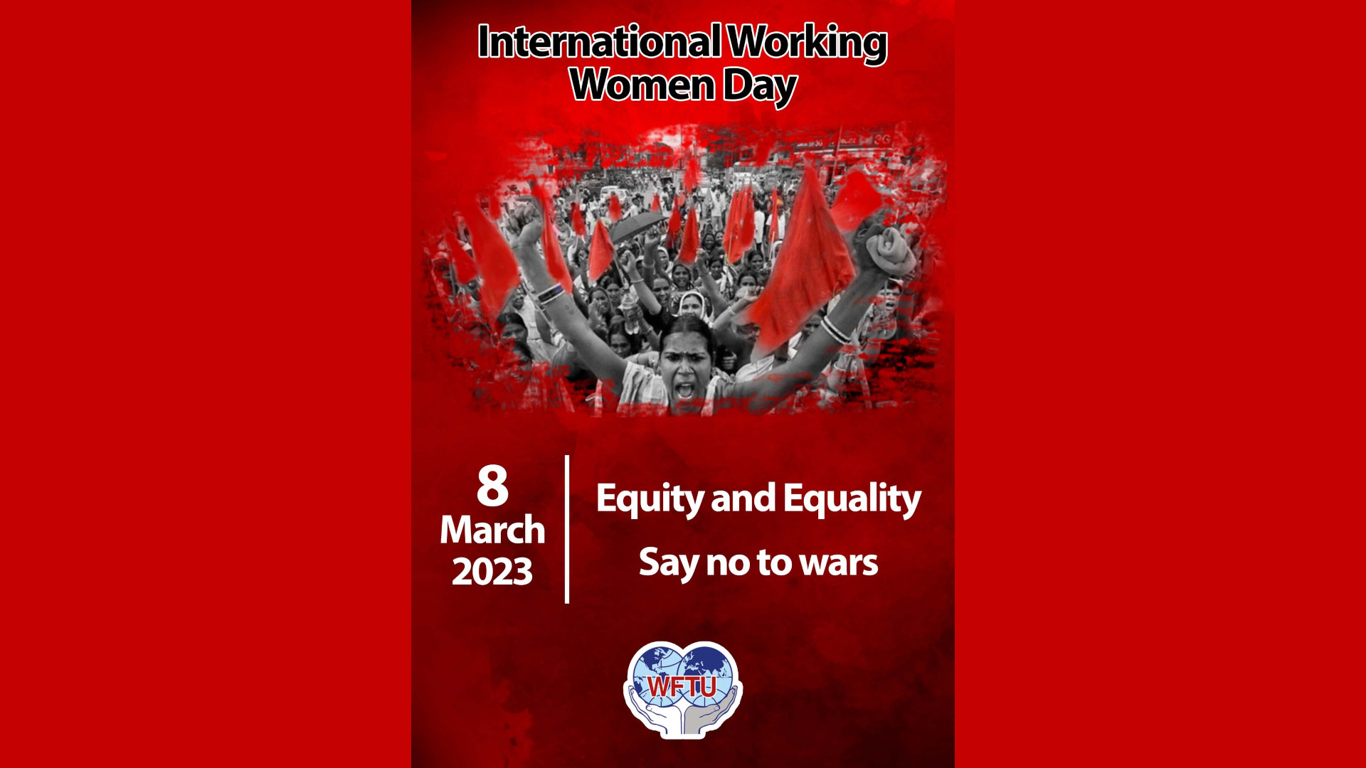 The World Federation of Trade Unions and its Working Women Committee, call upon working women, the entire working class, and the class-oriented trade unions all over the world to organize militant initiatives, actions, and activities on March 8th, 2023 under the banners, principles and goals of the World Federation of Trade Unions.