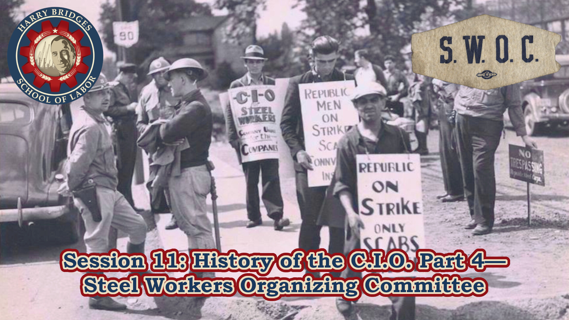 Labor United Educational League is proud to announce we are releasing the recordings from the Harry Bridges School of Labor sessions. Launched in Spring 2023, the Harry Bridges School of Labor is a monthly class held 2x per month. Classes cover a variety of topics aimed at building class conscious among union members. The eleventh session for 2024 of the Harry Bridges School of Labor was part four on our series covering the History of the Congress of Industrial Organizations (CIO). In this class we focused on one of the CIO’s largest campaigns, the Steel Workers Organizing Committee (SWOC).