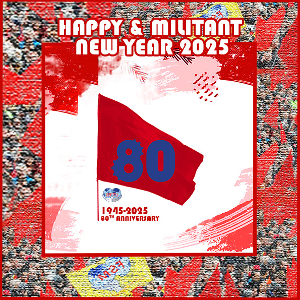 As we get ready to welcome the year 2025, the WFTU continues to stand in militant solidarity with workers in every corner of the world. We extend our unwavering support to peoples resisting exploitation, oppression, and imperialist interventions. Internationalism is our strongest weapon, and we call on all class-oriented unions to strengthen solidarity and unity in the struggle against capitalist barbarity.