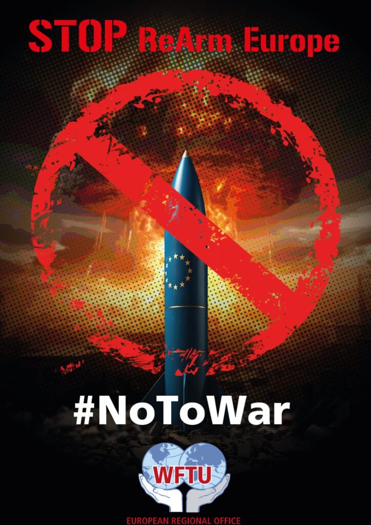 The European Office of the WFTU condemns the dangerous and anti-grass roots decisions of the EU Commission Summit to finance 800 billion Euros for military armament under the project ReArm EUROPE and calls upon all WFTU affiliates to organize and support the struggle against the arms race and militarization.