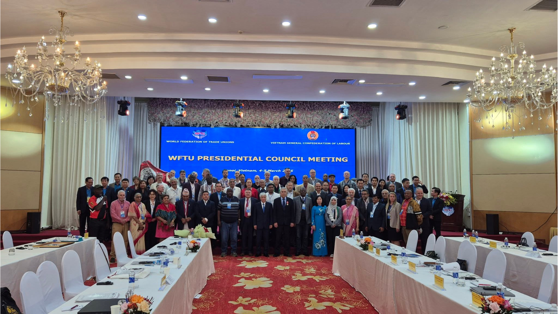 The WFTU Presidential Council, which met at its annual meeting on the 4th and 5th of March 2025 in Hanoi, Vietnam, condemns the crimes and the barbarity of the murderous state of Israel, and expresses its support and solidarity for the heroic Palestinian People in their struggle for freedom and dignity.