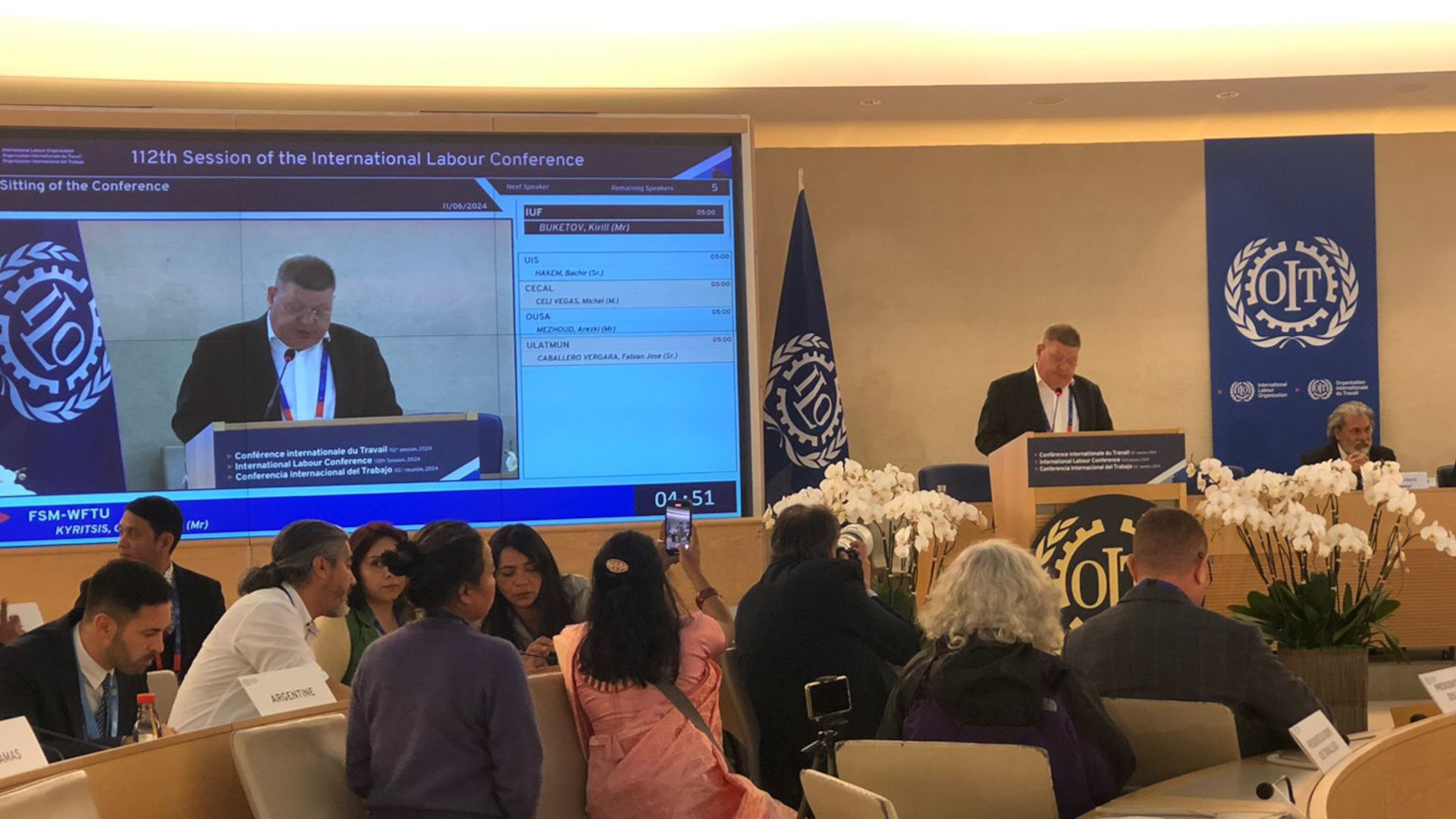 The WFTU’s General Secretary, Pambis Kyritsis, delivered his intervention at the plenary session of the 112th ILC, analyzing the global situation and reiterating the positions of the WFTU to defend workers’ rights all over the world.